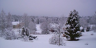 Mimo że już mamy wiosnę, na Wyspach Alandzkich zima trwa w najlepsze. Wciąż utrzymują się temperatury ujemne, a ostatnio spadło dużo śniegu, co ilustruje wykonane wczoraj zdjęcie. Średnia temperatura marca wyniosła w tym roku -5,7 st. wobec średniej wieloletniej -0,9 st. (z lat 1972-2000). To mówi samo za siebie. Przeciętna ilość dni z zaleganiem pokrywy śnieżnej, która na Alandach wynosi 108, została już tej zimy przekroczona. Wszystko wskazuje na to, ze wiosna zawita na archipelag z dużym opóźnieniem.